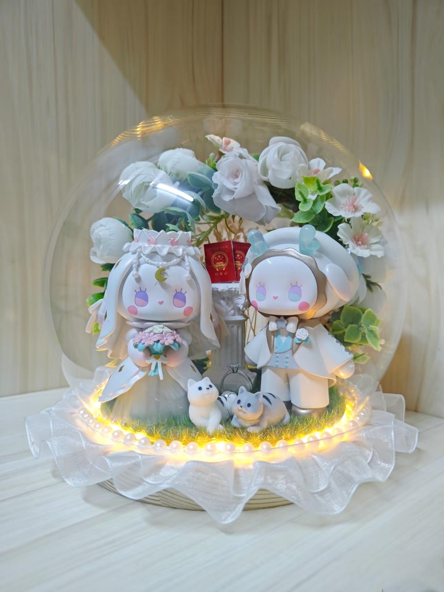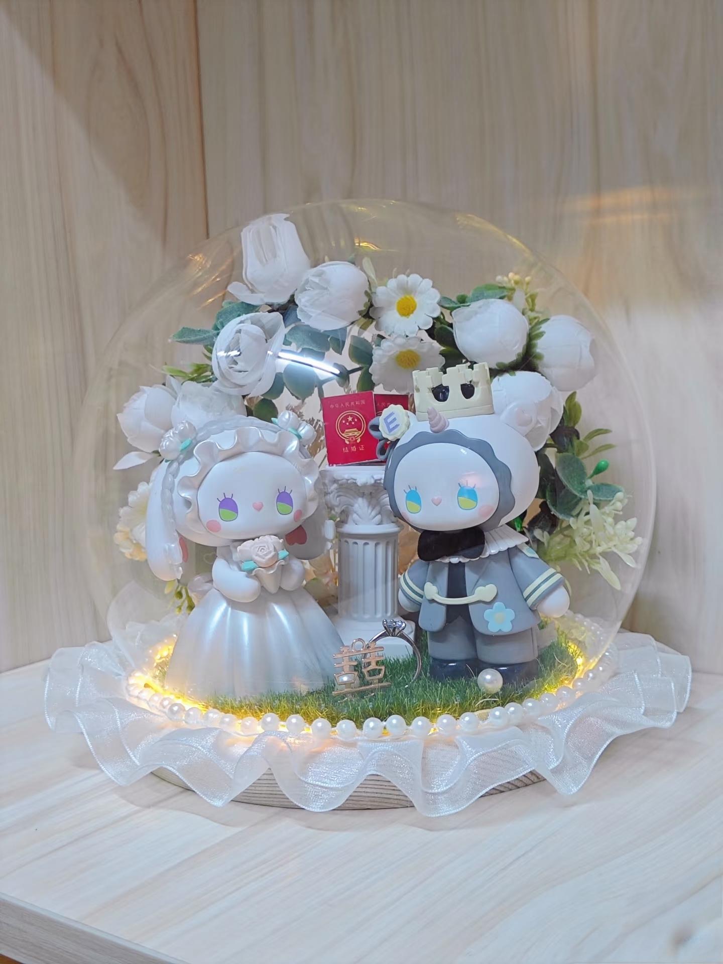 Made of high-quality PVC material, paired with vivid details such as pearlescent skirts and detachable veils. Some styles feature flocked texture and iridescent electroplating technology. Each character freezes the shining moments of diverse wedding aesthetics: combining sweetness and cuteness, full of ingenuity! Whether you are a senior trendy toy collector or looking for personalized wedding supplies, this series has both collection value and visual surprises, definitely worth getting~